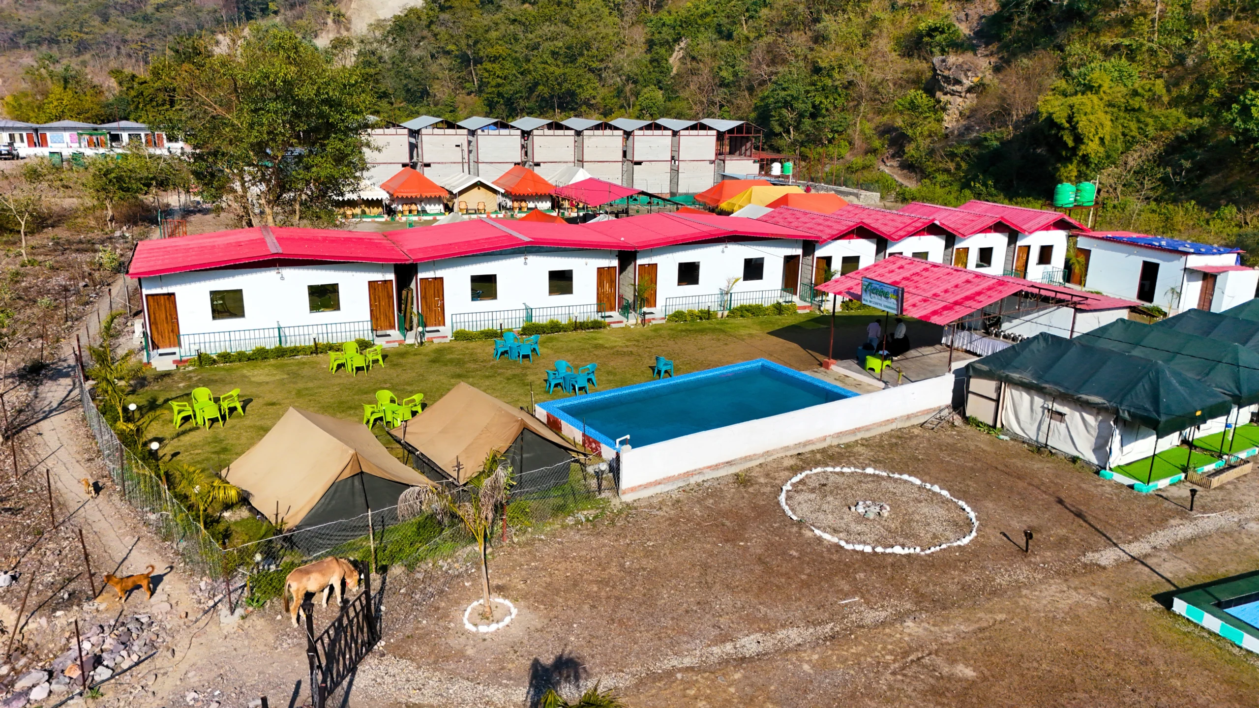 Relax in the refreshing swimming pool, set against a scenic backdrop, and feel the stress drift away as you float or lounge by the water at our lifestyle resort in Rishikesh. Spend quiet moments in our beautifully maintained gardens and sit-out areas, ideal for reading, talking, or simply gazing at the mountains from the comfort of the resort in Rishikesh. In the evenings, our bonfire dinners and fine dining experiences add warmth and flavor to your stay at this inviting resort in Rishikesh.